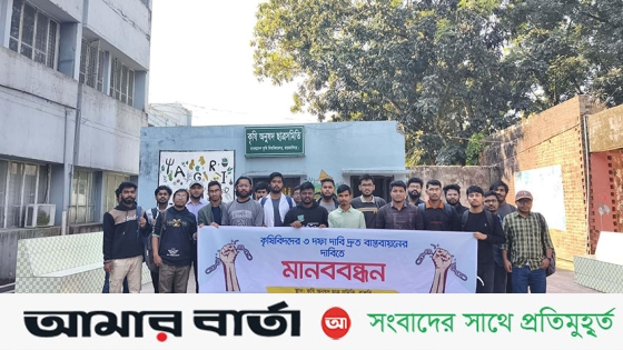কৃষি সম্প্রসারণে কৃষিবিদদের অধিকার নিশ্চিতের দাবিতে বাকৃবিতে মানববন্ধন