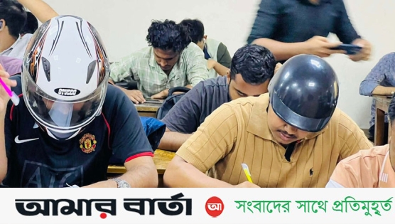 নিরাপত্তার শঙ্কায় গণিত বিভাগের ১৮তম ব্যাচের শিক্ষার্থীরা হেলমেট পরে ক্লাস ও পরীক্ষায় অংশ নিতে শুরু করেছেন।