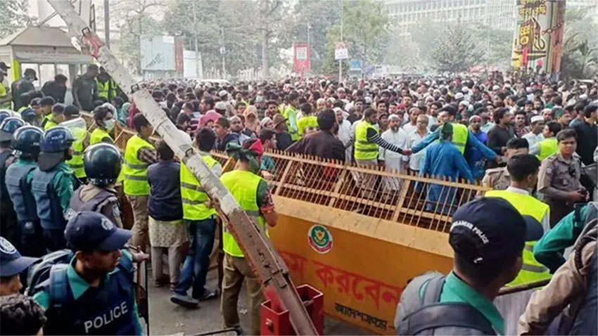 ওসমান হাদির কবরের দিকে জনস্রোত, শাহবাগে পুলিশের ব্যারিকেড