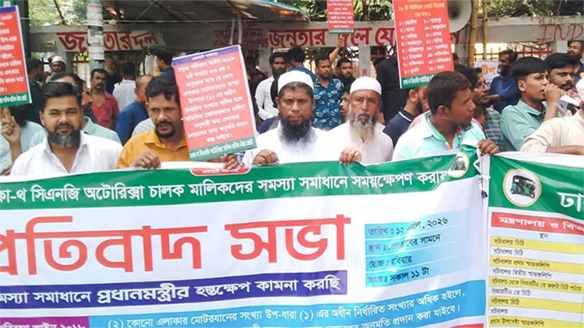 ঢাকা জেলায় চলাচলকারী সিএনজিচালিত অটোরিকশা মহানগরীতেও চলাচলের অনুমতি চেয়ে বিক্ষোভ সমাবেশ করেছে সিএনজি অটোরিকশা মালিক