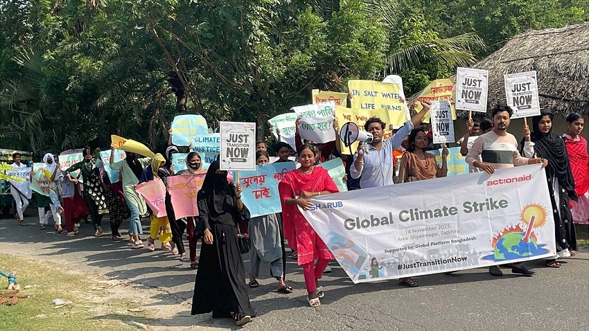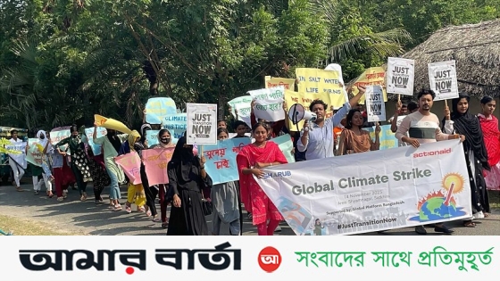 সাতক্ষীরা শ্যামনগর জীবাশ্ম জ্বালানিতে বিনিয়োগ বন্ধে ও এখনই ন্যায়সঙ্গত রূপান্তর এবং নবায়ন শক্তির জন্য বিনিয়োগ বাড়ানোর জন্য বিশ্ব মোড়লদের আহ্বান জানিয়েছে উপকূলের শরুব ইয়ুথ টিম।