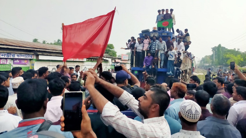 কুষ্টিয়ার মিরপুরে আন্তঃনগর সব ট্রেনের স্টপেজ চালু, স্টেশন মাস্টার নিয়োগ, প্লাটফর্ম উঁচুকরণ ও আধুনিকায়নসহ সাত দফা দাবিতে অবরোধ কর্মসূচি পালন করছে স্থানীয় ছাত্র-জনতা।
