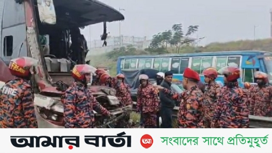 শ্রীনগর ফায়ার সার্ভিস অ্যান্ড সিভিল ডিফেন্স সূত্র জানায়, এক্সপ্রেসওয়ের পাশে ঢাকামুখী লেনে সড়কে থেমে থাকা পণ্যবাহী একটি ট্রাককে পূর্বাশা পরিবহন নামের একটি যাত্রীবাহী বাস নিয়ন্ত্রণ হারিয়ে সজোরে পেছন থেকে ধাক্কা দেয়।