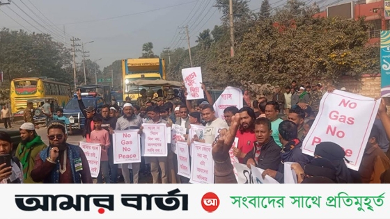 এ দিন সকাল ১০টা থেকে বেলা ১১টা পর্যন্ত স্থানীয় বিভিন্ন সংগঠনের ব্যানারে আয়োজিত এই অবস্থান কর্মসূচিতে নারী, পুরুষ, ব্যবসায়ী, শিক্ষার্থীসহ নানা পেশার মানুষ অংশ নেন। তারা হাতে হাতে প্ল্যাকার্ড ও ব্যানার নিয়ে গ্যাস সরবরাহ বন্ধের প্রতিবাদ জানান।