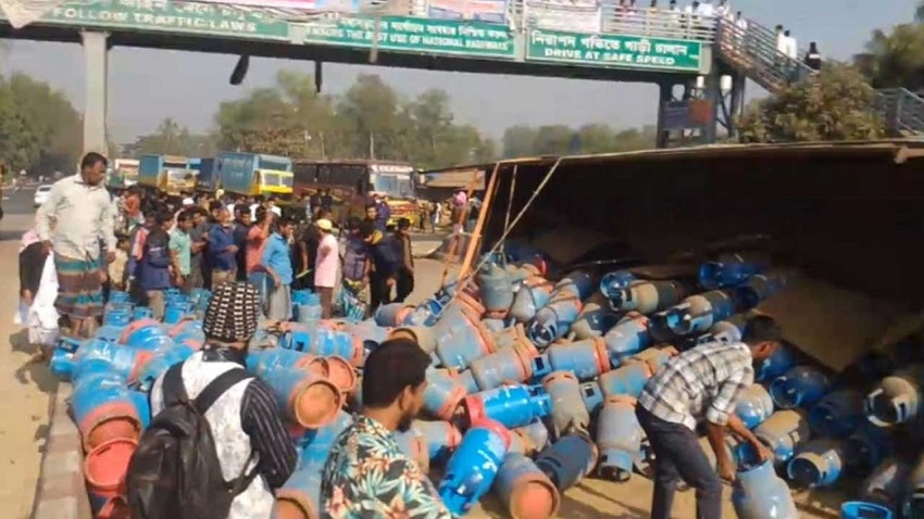 মীরসরাইয়ে সিলিন্ডারবাহী ট্রাক উল্টে একজনের মৃত্যু