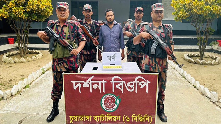 চুয়াডাঙ্গার দর্শনা থেকে প্রায় আড়াই কোটির টাকার ১০টি স্বর্ণের বারসহ একজনকে আটক করেছে চুয়াডাঙ্গা ব্যাটালিয়ন