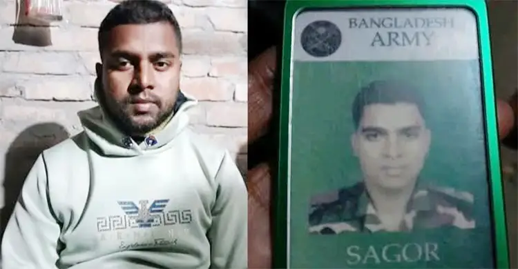 আটক শ্রী সাগর নওগাঁর নিয়ামতপুর উপজেলার ভাদরন্ড গ্রামের মৃত জোগেন্দ্র নাথের ছেলে। তিনি সেনাবাহিনীর সৈনিক পরিচয়ে দীর্ঘদিন ধরে বিভিন্ন পরিবারের সঙ্গে প্রতারণা করে আসছিলেন।