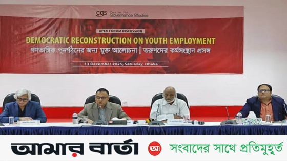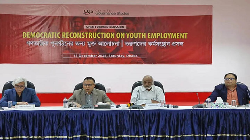 গবেষণা প্রতিষ্ঠান সেন্টার ফর গভর্ন্যান্স স্টাডিজ (সিজিএস) আয়োজিত ‘গণতান্ত্রিক পুনর্গঠনের জন্য মুক্ত আলোচনা: তরুণদের কর্মসংস্থান প্রসঙ্গ’ শীর্ষক সংলাপে এসব কথা বলেছেন বক্তারা। শনিবার (১৩ ডিসেম্বর) রাজধানীর সিরডাপ মিলনায়তনে এ সংলাপ হয়।