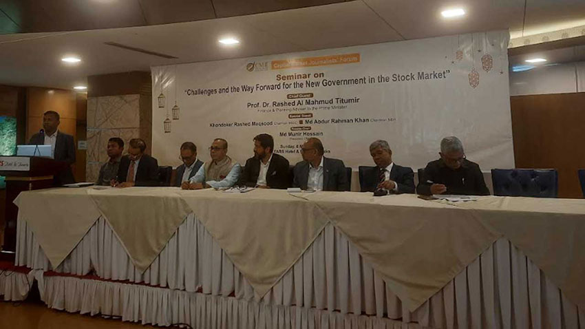 রোববার (৮ মার্চ) রাজধানীর ফারস হোটেল অ্যান্ড রিসোর্টে আয়োজিত 'চ্যালেঞ্জ অ্যান্ড দ্য ওয়ে ফরোয়ার্ড ফর দ্য নিউ গভর্নমেন্ট ইন দ্য স্টক মার্কেট' শীর্ষক সেমিনারে বিশেষ অতিথির বক্তব্যে তিনি এ কথা বলেন। সেমিনারের আয়োজন করেছে পুঁজিবাজার নিয়ে কাজ করা সাংবাদিকদের সংগঠন ক্যাপিটাল মার্কেট জার্নালিস্ট ফোরাম (সিএমজেএফ)।