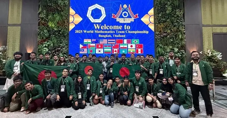থাইল্যান্ডের রাজধানী ব্যাংককে অনুষ্ঠিত ওয়ার্ল্ড ম্যাথমেটিকস টিম চ্যাম্পিয়নশিপ-২০২৫-এ দুর্দান্ত পারফরম্যান্স করেছে বাংলাদেশ গণিত দল। এ প্রতিযোগিতায় বাংলাদেশের শিক্ষার্থীরা ৯টি সিলভার এবং ২২টি ব্রোঞ্জ পদক অর্জন করেছে। পাশাপাশি ৫ জন শিক্ষার্থী পেয়েছেন মেরিট সম্মাননা।