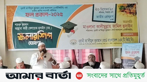 নূরানী তালিমুল কুরআন বোর্ড বাংলাদেশ (এনটিকিউবি) পরিচালিত তৃতীয় শ্রেণির ১৯তম সমাপনী পরীক্ষার ফল প্রকাশিত হয়েছে। কেন্দ্রীয় কার্যালয়ের শায়খুল কুরআন মিলনায়তনে আয়োজিত এক অনুষ্ঠানে এই ফল প্রকাশ করা হয়। একই সঙ্গে অনুষ্ঠানে জুলাই যোদ্ধা শরিফ ওসমান হাদির রুহের মাগফিরাত কামনায় বিশেষ মোনাজাতের আয়োজন করা হয়।