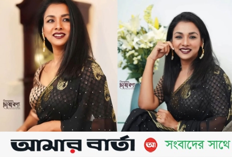 শাড়ি, গহনা আর পুরো স্টাইলিংয়ে রয়েছে নিখুঁত সামঞ্জস্য। সোনালি গয়নার সঙ্গে কালো শাড়ির মেলবন্ধন তার ব্যক্তিত্বকে আরও উজ্জ্বল করেছে। জানালার পাশের আলো-ছায়ার খেলায় তার মুখের অভিব্যক্তি ছবিগুলোকে করে তুলেছে আরও জীবন্ত।
