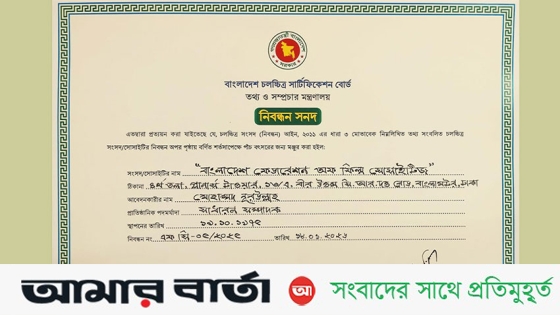 গণপ্রজাতন্ত্রী বাংলাদেশ সরকারের নিবন্ধন পেয়েছে বাংলাদেশ ফেডারেশন অফ ফিল্ম সোসাইটিজ । আগামী ৫ বছরের জন্য জন্য এ নিবন্ধনের বৈধতা কার্যকর থাকবে। বাংলাদেশে চলচ্চিত্র সংসদ আন্দোলনের নেতৃত্বদানকারী বৈধ অভিভাবক সংগঠন এখন বাংলাদেশ ফেডারেশন অফ ফিল্ম সোসাইটিজ। এটি ইন্টারন্যাশনাল ফেডারেশন অফ ফিল্ম সোসাইটিজের সদস্য সংগঠন।