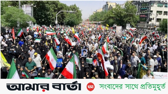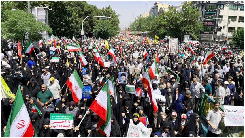 সাপ্তাহিক জুমার নামাজের পর ইরানের রাজধানী তেহরানে ইসরায়েলের বিরুদ্ধে হাজার হাজার মানুষ বিক্ষোভ করেছেন। এ সময় বিক্ষোভকারীদের ইরানের ক্ষমতাসীন সরকার ও নেতাদের সমর্থনে বিভিন্ন ধরনের স্লোগান দিতে দেখা যায়। শুক্রবার ইরানের রাষ্ট্রীয় টেলিভিশনের খবরে এই তথ্য জানানো হয়েছে।