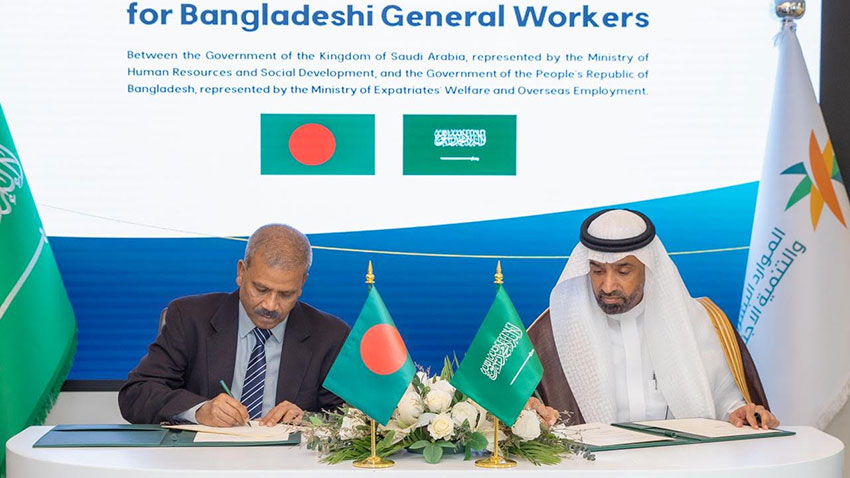 কর্মী নিয়োগে সৌদি আরবের সঙ্গে চুক্তি স্বাক্ষর করেছে বাংলাদেশ। সোমবার (৬ অক্টোবর) রিয়াদে বাংলাদেশের পক্ষে প্রবাসী কল্যাণ ও বৈদেশিক কর্মসংস্থান মন্ত্রণালয়ের উপদেষ্টা ড. আসিফ নজরুল এবং সৌদি আরবের পক্ষে মানব সম্পদ ও সামাজিক উন্নয়ন মন্ত্রণালয়ের মন্ত্রী ইঞ্জিনিয়ার আহমেদ বিন সোলাইমান আল-রাজী চুক্তি স্বাক্ষর করেন।