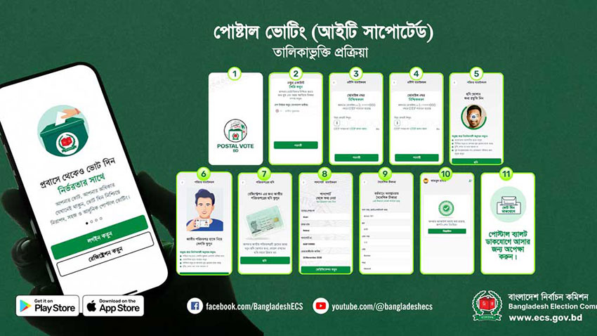 গত ১৮ নভেম্বর ‘পোস্টাল ভোট বিডি’ অ্যাপ উদ্বোধন করা হয়। পরদিন থেকে ধারাবাহিকভাবে বৈশ্বিক অঞ্চলভিত্তিক নিবন্ধন শুরু হয়।