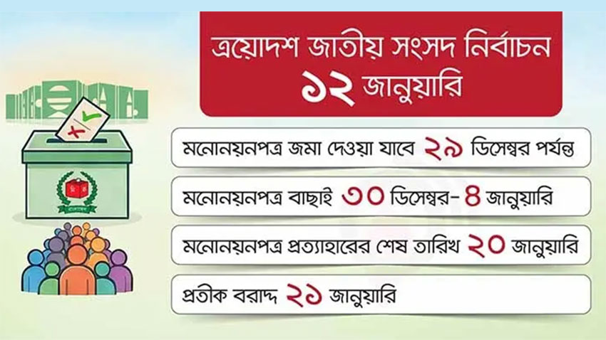 মনোনয়ন জমার শেষ তারিখ ২৯ ডিসেম্বর