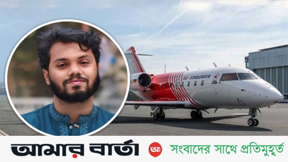হাদিকে সিঙ্গাপুরে নিয়ে যেতে এয়ার অ্যাম্বুলেন্সটি আজ বেলা ১১টা ২২ মিনিটে সিঙ্গাপুর থেকে হযরত শাহজালাল আন্তর্জাতিক বিমানবন্দরে অবতরণ করেছে।