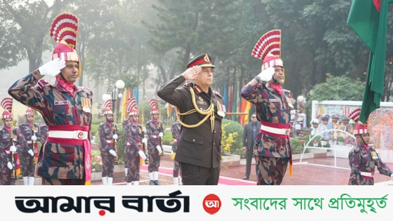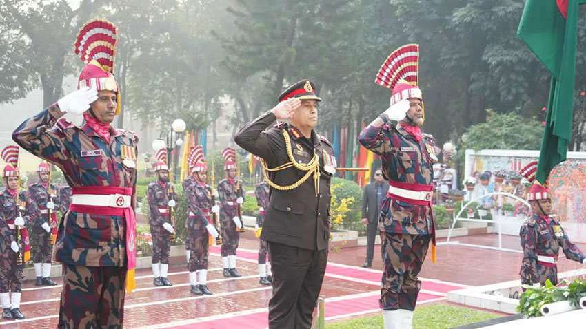 মঙ্গলবার (১৬ ডিসেম্বর) সকালে ঢাকার পিলখানায় বিজিবি সদর দপ্তরের ‘সীমান্ত গৌরব’-এ পুষ্পস্তবক অর্পণ করেন তিনি। এ সময় বিজিবির একটি সুসজ্জিত চৌকস দল শহীদদের প্রতি শ্রদ্ধা জানিয়ে ‘গার্ড অব অনার’ প্রদান করে।