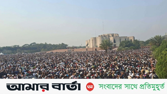কয়েক লাখ মানুষের অংশগ্রহণে জাতীয় সংসদ ভবন এলাকায় ইনকিলাব মঞ্চের মুখপাত্র শহীদ শরিফ ওসমান হাদির জানাজা অনুষ্ঠিত হয়েছে। জানাজায় অংশগ্রহণকারীরা বলছেন, এটাই স্মরণকালের সবচেয়ে বড় জানাজা। জানাজায় অংশগ্রহণকারী অনেকেই বলছেন, শহীদ ওসমান হাদির জানাজায় ৭ থেকে ৮ লাখ মানুষ অংশ নিয়েছেন।