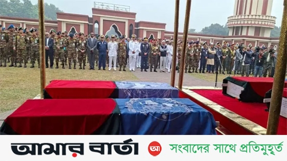 ঢাকা সেনানিবাসের কেন্দ্রীয় সেনা মসজিদ প্রাঙ্গণে ৬ বাংলাদেশি শান্তিরক্ষীর জানাজা অনুষ্ঠিত হয়।