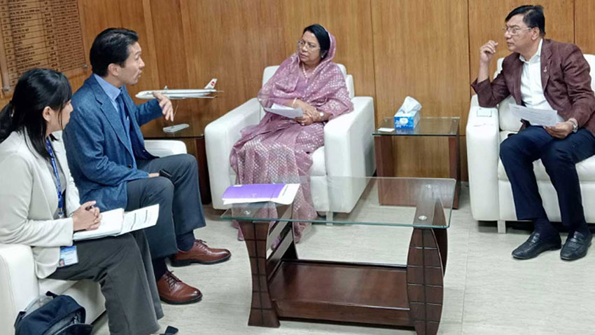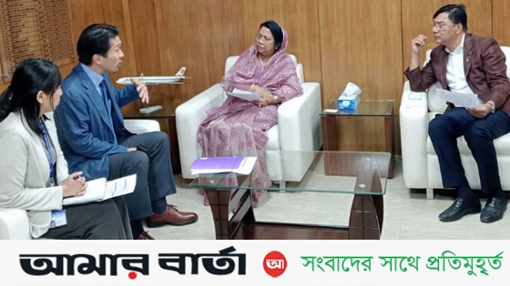 বেসামরিক বিমান পরিবহন ও পর্যটন মন্ত্রী আফরোজা খানম (রিতা) ও প্রতিমন্ত্রী এম রশিদুজ্জামান মিল্লাতের সঙ্গে সাক্ষাৎ করেছেন জাপান ইন্টারন্যাশনাল কো-অপারেশন এজেন্সি (জাইকা) বাংলাদেশ অফিসের চিফ রিপ্রেজেন্টেটিভ ইচিগুচি তোমোহিদে।