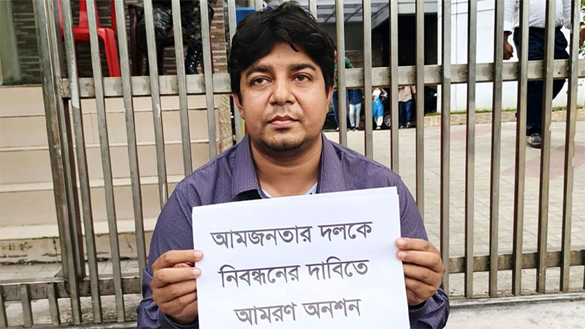 নতুন রাজনৈতিক দল হিসেবে আমজনতা দল নির্বাচন কমিশনের (ইসি) নিবন্ধন না পাওয়ায় দলটির সদস্যসচিব তারেক রহমান কমিশনের সামনে আমরণ অনশনের ডাক দিয়েছেন।