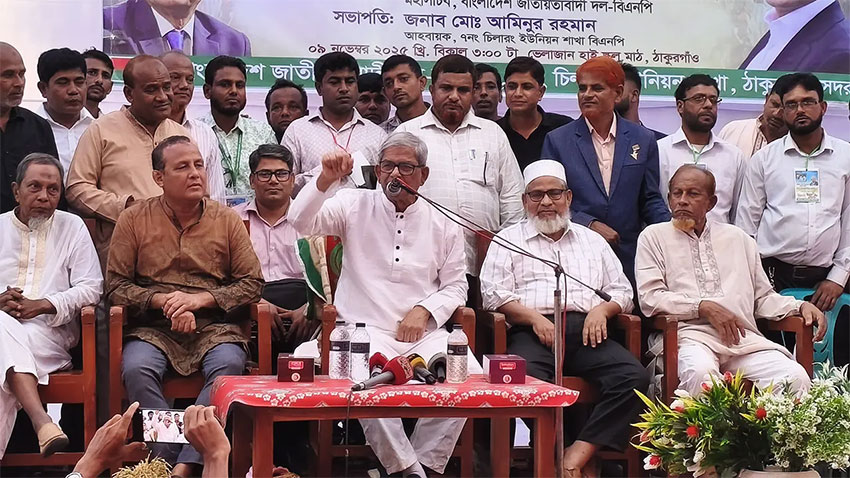 রোববার (৯ নভেম্বর) সন্ধ্যায় ঠাকুরগাঁও সদর উপজেলার ৭ নম্বর চিলারং ইউনিয়নের আয়োজনে ভেলাজান উচ্চ বিদ্যালয় মাঠে ইউনিয়নবাসীর সঙ্গে মতবিনিময় সভায় প্রধান অতিথির বক্তব্যে এসব কথা বলেন মির্জা ফখরুল।