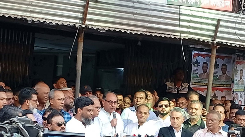 শনিবার (১৩ ডিসেম্বর) দুপুরে নয়াপল্টনে চট্টগ্রাম-৮ আসনে বিএনপির প্রার্থী এরশাদ উল্লাহ ও ঢাকা ইনকিলাব মঞ্চের মুখপাত্র শরিফ ওসমান হাদির ওপর হামলার প্রতিবাদে বিক্ষোভ মিছিলের আগে সমাবেশে প্রধান অতিথির বক্তব্যে তিনি এসব কথা বলেন।
