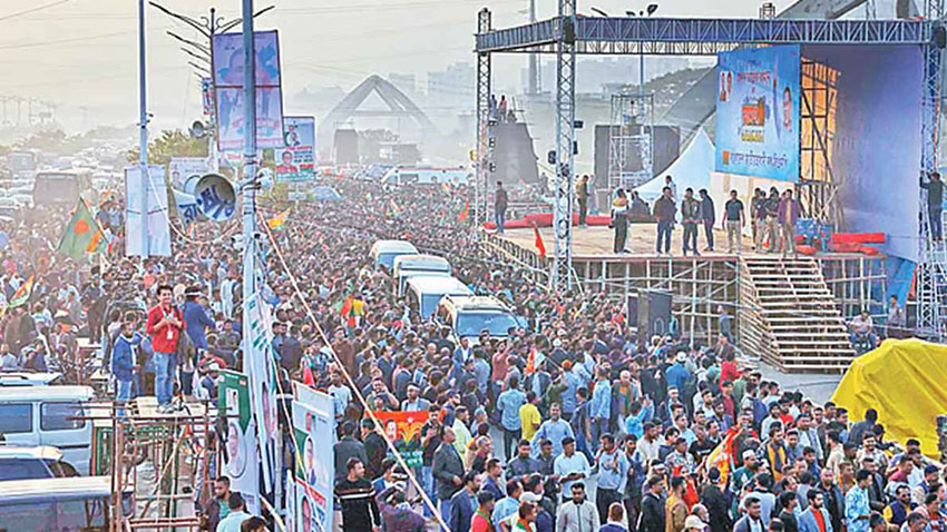 তীব্র শীত উপেক্ষা করে জনসমুদ্রে পরিণত ৩০০ ফিট এলাকা