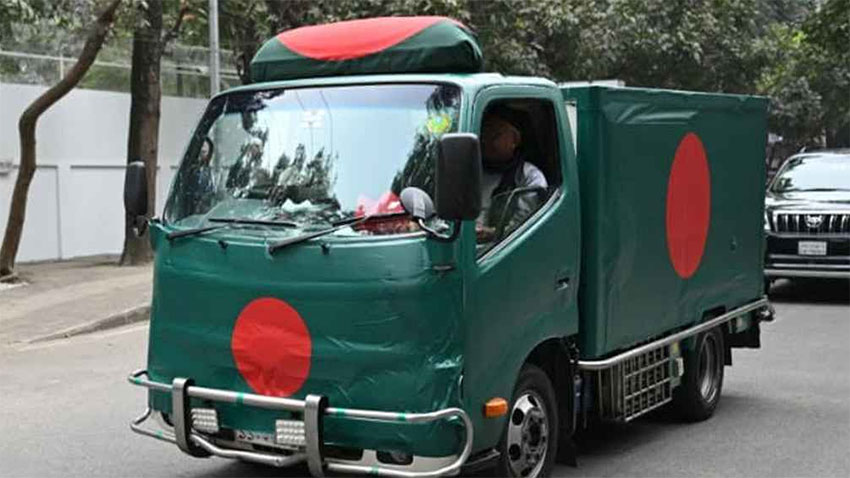 বিএনপি চেয়ারপারসন ও সাবেক প্রধানমন্ত্রী খালেদা জিয়ার মরদেহ জাতীয় পতাকায় মোড়ানো একটি গাড়িতে করে গুলশান