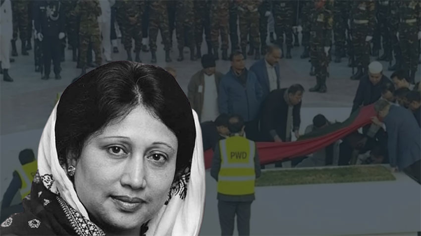 এর আগে বেলা ১১টা ৫০ মিনিটে মানিক মিয়া অ্যাভিনিউয়ে আনা হয় খালেদা জিয়ার মরদেহ। সেখানেই তার জানাজা অনুষ্ঠিত হবে। জানাজা শেষে বেগম জিয়াকে স্বামী শহীদ রাষ্ট্রপতি জিয়াউর রহমানের কবরের পাশে সমাহিত করা হবে।