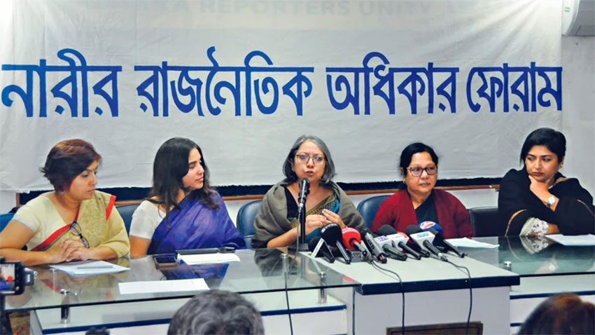 গতকাল সোমবার সকালে ঢাকা রিপোর্টার্স ইউনিটির সাগর-রুনি মিলনায়তনে ‘নারীপ্রার্থী মনোনয়ন সংকট: দলগুলোর প্রতিশ্রুতি ও বাস্তবায়নের ব্যবধান এবং নির্বাচন কমিশনের জবাবদিহিতা’ শীর্ষক সংবাদ সম্মেলনে এসব কথা বলেন ফোরামের নেতারা।