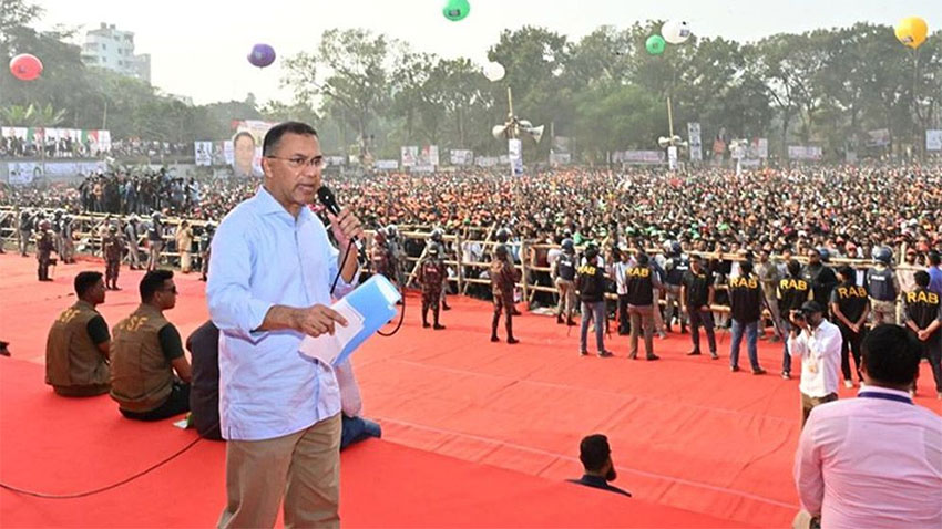 ফরিদপুরের ঐতিহাসিক সরকারি রাজেন্দ্র কলেজ মাঠে নির্বাচনি জনসভায় বিএনপির চেয়ারম্যান তারেক রহমান।