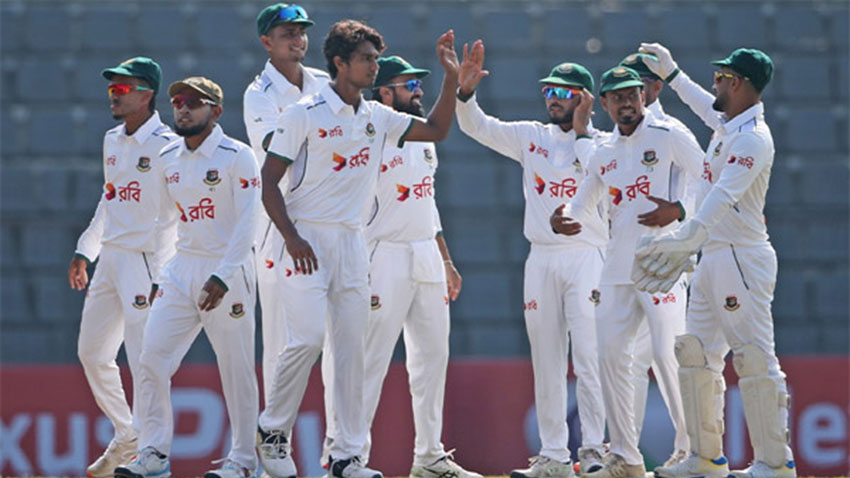 দুই পেসার হাসান মাহমুদ ও নাহিদ রানাকে দিয়ে বোলিংয়ের সূচনা করান অধিনায়ক নাজমুল হোসেন শান্ত। উদ্দেশ্য সকালের শিশির ভেজা উইকেটে যদি দ্রুত দুই-একটি উইকেট নেয়া যায়!