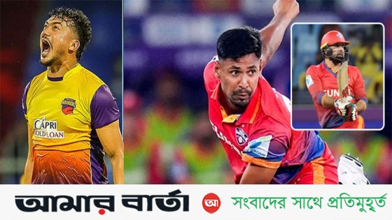 বাংলাদেশের দুই পেস তারকা তাসকিন আহমেদ ও মুস্তাফিজুর রহমান খেলছেন ইন্টারন্যাশনাল লিগ টি-টোয়েন্টিতে। এই আসরে প্রথমবার দুই তারকার মুখোমুখি লড়াই হয়ে গেল। সেখানে দুজনেই বল হাতে বেশ ভালো করেছেন। তারা দুজনে মিলে নিয়েছেন ৫ উইকেট। তবে শেষ হাসি হেসেছেন মুস্তাফিজ। তাসকিনদের শারজা ওয়ারিয়র্সকে ৬৩ রানে হারাতে দুবাই ক্যাপিটালসের জয়ের নায়ক হয়েছেন মোহাম্মদ নবী।