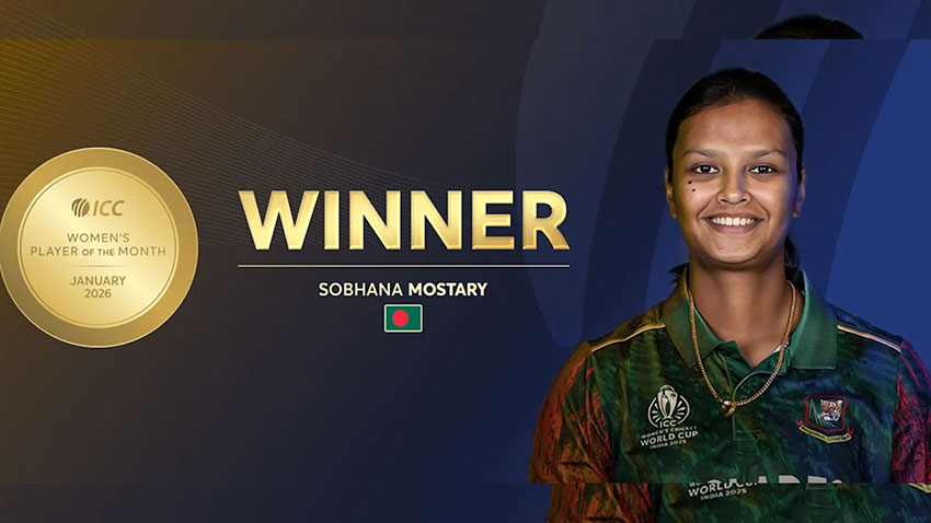 আইসিসি নারী টি-টোয়েন্টি বিশ্বকাপের গ্লোবাল কোয়ালিফায়ারে দারুণ পারফরম্যান্সের স্বীকৃতি পেলেন সোবহানা মোস্তারি। ২০২৬ সালের জানুয়ারি