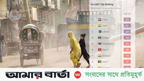 অব্যাহত রয়েছে বৈশ্বিক বায়ুদূষণ পরিস্থিতির অবনতি। বিশেষ করে শীতকালীন শুষ্ক আবহাওয়ায় মেগাসিটি ঢাকার বায়ুমান প্রায়ই বিপজ্জনক পর্যায়ে পৌঁছাচ্ছে। আজ বিশ্বের দূষিত শহরগুলোর তালিকায় শীর্ষ চারটি শহরের বায়ুমান ‘ভয়াবহ’ পর্যায়ে রয়েছে, যেখানে ঢাকার অবস্থান চতুর্থ।
